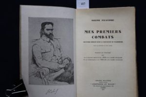 PILSUDSKI (Joseph) – Mes premiers combats. Souvenirs rédigés dans la forteresse de Magdebourg. Avec un portrait et trois cartes. Traduit du polonais par le Lt-Colonel breveté Ch. Jèze et le Commandant J.-A. Teslar, de l’Armée française. Paris, Librairie Étrangère Gebethner et Wolff 1931, in-8° (14,5 x 23 cm) broché couverture imp. de xi- 205 pp.- 2ff., un portrait frontispice et 3 cartes dépliantes. Edition originale, un des 25 ex. num. sur Hollande van Gelder (n° 39). État neuf, non coupé. Réf. : Albert Depréaux : « L'étude de psychologie militaire composée par le futur maréchal dans la solitude de Magdebourg, est un des livres les plus profondément humains qu'un homme d’action n’ait jamais pu écrire. La responsabilité d'un chef, ses réflexes, ses audaces, ses décisions et ses erreurs, sont étalées à l'œil nu, comme sous le scalpel d'un impitoyable chirurgien, avec une franchise et une rigueur dont je ne connais que peu d'exemples. Pas d'à-peu-près, pas de littérature, mais une langue nerveuse, précise, parfois violente et même crue, et aussi pleine d’humour, mais toujours admirablement adaptée au sujet … la haute portée philosophique de cet ouvrage, le meilleur, à notre avis, de tous ceux publiés dans ces dernières années, sur la responsabilité du commandement ».