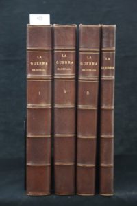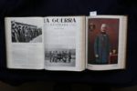 [1914-1918] - RIERA (Augusto) – La Guerra Ilustrada. Barcelona, Centro Editorial Artistico de Miguel Segui, 1914-1918. Soit du numéro 1 au numéro 166 et dernier, totalisant 2292 pp. à pagination continue, abondamment illustrées de cartes, photographies et gravures. Ensemble relié en 4 volumes petit in-folio (24 x 32,5 cm) demi-chagrin brun, dos à nerfs et filets or. Le quatrième volume contient les couvertures en couleurs de tous les numéros. Bons exemplaires, complet et peu commun. Augusto RIERA y SOL (186? - 1935), journaliste, éditeur et communiste espagnol, est tombé dans l'oubli malgré son travail acharné et l'intérêt de ses nombreux livres. Avec l'éditeur Miguel Seguí, il lance opportunément La Guerra Ilustrada, dont le premier numéro est mis en vente fin août 1914. Au cours des 52 mois que dura la Grande Guerre, la revue publia 166 numéros d’une grande qualité artistique et éditoriale ; ils furent entièrement rédigés par Augusto Riera, qui maintenait une certaine distance, impartiale et indépendante, sans tomber dans le manichéisme militant des germanophiles ‘Renovación Española’ ni celui des alliés tels ‘Los Aliados’ plus ou moins mercenaires ou idéalistes.