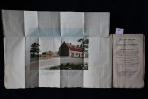 TARDIEU (Ambroise) – Relation anglaise de la bataille de Waterloo, ou du Mont Saint-Jean, et des évènements qui l'ont précédée ou suivie, accompagnée des Rapports français, prussien et espagnol, d'un Plan très exact de la bataille, et d'une Carte générale du Théâtre de la Campagne : ces deux planches très bien coloriées. Traduite sur la deuxième édition publiée à Londres en septembre 1815. Seconde édition revue et augmentée d’une vue en couleur, de la Ferme de la Belle Alliance, dessinée deux jours après la Bataille. Paris, A. Tardieu consorts (Imp. de Mme Ve Courcier) 1815, in-8° (14 x 21,5 cm) broché, sous couverture d'attente, un peu fanée, de iv-87 pp. non rognées. Rare brochure parue quelques mois après la bataille de Waterloo ; bon exemplaire tel que paru, complet des planches. Réf. : Quérard ‘France Littéraire’ IX-340 : « Le récit d'un événement si grand en lui-même, écrit par un Officier dont l'impartialité et la véracité sont reconnues dans sa patrie, est précieux pour l'histoire future en même temps que l'appât le plus vif qu'on puisse offrir à la curiosité présente ».