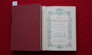 BRÉMOND (Alphonse) – Nobiliaire Toulousain. Inventaire général des titres probants de noblesse et de dignités nobiliaires. Toulouse, Bonnal et Gibrac 1863, 2 vols. grand in-8° (16,5 x 24,5 cm) de lxiv-431 + 580 pp., reliés pleine toile granité lie-de-vin, pièce de titre noire, couv. conservées. Bons exemplaires. Édition originale de ce nobiliaire très érudit qui comprend : « Lettres patentes d'anoblissement, jugements de Confirmation ou de Maintenue de noblesse, Érections de Terres en Baronnie, Vicomté, Comté, Marquisat, description héraldique des Blasons, Actes d'Hommages, de Reconnaissances, Devises, Cris… » de la plupart des familles nobles. Réf. : Saffroy II-26512.