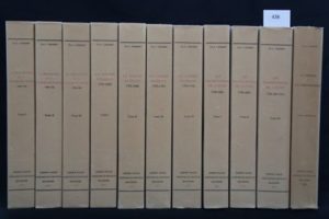 CHASSIN (Charles-Louis) – La Vendée et la chouannerie. Études documentaires sur la Révolution française. Paris, Dupont 1892-1900 [Mayenne, Joseph Floch Imprimeur-Éditeur 1973]. Complet en 11 vols. gr. in-8° br. (16,5 x 25 cm) : Tome 1, 2, 3 : La Préparation de la Guerre de Vendée, 1789-1793 (xxix-523, 555, 628 pp.) – Tomes 4, 5, 6, 7 : La Vendée patriote, 1793-1794 (xii-621, 639, ix-575, 699 pp.) – Tomes 8, 9, 10 : Les Pacifications de l'Ouest, 1795-1815 (xii-607, 636, viii-803 pp.) – Tome 11 : Table générale alphabétique et analytique des trois séries, imp. sur 2 colonnes, avec cartes du théâtre de la guerre civile (658 pp.), couv. grises imprimées en rouge et noir, dos insolés. Réimpression tirée à 800 ex. numérotés (n° 72). Bons exemplaires, non coupés, état quasi neuf. « Le travail monumental de Charles-Louis Chassin demeure aujourd'hui encore, extrêmement précieux. Dès l'avertissement, l'auteur prévient que son travail ‘est destiné à détruire quelques légendes, à dissiper beaucoup de préjugés’ » (Claude Petitfrère) ; « Son œuvre est un étonnant télescopage entre d’une part une publication de sources d’une richesse inouïe, solidement référencées, et d’autre part une obsession qui conduit l’auteur à traquer partout le complot et à faire de la Vendée tout à la fois la cause et l’aliment de la Terreur... » (Alain Gérard). Réf. : Lemière 95-96, Vachon 1180.