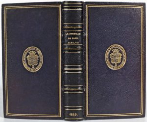 Édition originale de la traduction (éd. orig. en italien : [Elzevier], 1668]). Édition annexée aux Elzeviers. # Willems 1830 et 1808. ▲ Provenance : J. Gomez de la Cortina, important collectionneur mexicain (supra libros "Bibliotheca Cortiniana" et ex-libris); Georges Montandon (ex-libris armorié). Joint : SÉNAULT, Jean-François.- L'Homme criminel, ou La corruption de la nature par le péché, selon les sentimens de saint Augustin. Amsterdam, Pierre le Grand [Abraham Wolfgang], 1665, 2 tomes en 1 vol. in-12° relié par Ch. De Samblanx et J. Weckeser en plein maroquin brun, triple filet doré cernant les plats de papier, dos à nerfs et caissons sertis de filets dorés, filets et roul. ornée fleuronnés sur les coupes et remplis, tr. dorées sur marbrure (dos passé). Édition annexée aux Elzeviers, ornée de la belle vignette de titre gravée sur bois figurant un sphinx avec la devise "Inextricabilis error" (éd. orig. : Paris, 1644); # Willems 1745; # Rahir 2262.