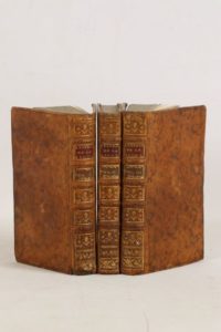 [ANQUETIL] - L’esprit de la Ligue, ou histoire politique des troubles de France, pendant les XVI et XVIIe siècles - Paris; Jean-Th. Herissant, 1771 - 3 volumes In-12° - Reliure de l’époque veau havane marbré (légers frottements aux plats) - Dos à nerfs ornés et tomés or (2 coiffes arasées, 1 autre frottée) - Tranches bleues mouchetées de blanc - Bon exemplaire en 2nde édition.
