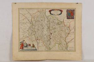 [CARTE GÉOGRAPHIQUE] - JANSON (Guillaume) BLAEU (Johannes) - Cadurcium Vernaculé Querci - Amsterdam; J. Blaeu, [1635] tirée de Théâtre du Monde ou Nouvel Atlas - 1 carte géographique en feuille en coloris d’époque avec belles armoiries en haut à droite, titre encadré et gravure en bas à gauche - Région du Quercy avec la ville de Cahors en son centre - Pliure centrale, quelques rares petites rousseurs - Bon état.