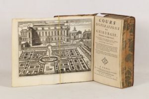[MÉDECINE] - DIONIS (Pierre) - Cours d’opérations de chirurgie, démontrées au Jardin Royal […] - Paris; Veuve d’Houri, 1777 - 1 fort volume In-8° - 1 volume In-8° - Portrait frontispice de l'auteur, 1 planche dépliante du jardin royal, 16 planches hors texte au complet (dont 1 dépliante) et 61 figures gravées dans le texte - Quelques petites auréoles éparses - Reliure de l’époque basane havane marbrée (1ère charnière fendue, parties de coupes usées, quelques rares épidermures aux plats) - Dos à nerfs orné (coiffe inférieure arasée, pièce de titre manquante) - Tranches marbrées - 8e édition augmentée de Pierre Dionis, médecin et chirurgien de la reine Marie-Thérèse d’Autriche puis du Dauphin et de la maison de France, qui fut l’1 des plus remarquables praticiens de son temps. Il réalisa le premier des dissections anatomiques et des opérations chirurgicales en public, ce qui contribua bien sûr à sa notoriété.