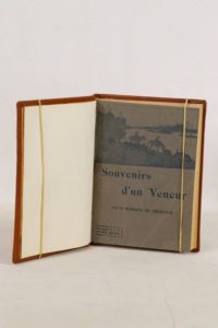 [CHASSE] - CHARNACÉ (Marquis de) - Souvenirs d’un veneur - Paris; Pairault Cie, 1906 - 1 volume In-8° - Frontispice gravé - Reliure postérieure veau fauve - 1ère couverture illustrée conservée - Dos lisse orné et titré or - Cachet de bibliothèque, ex-libris manuscrit: Baron de Villebois-Mareuil - Bon exemplaire.