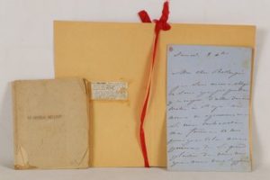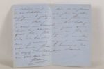 [CORRESPONDANCE] - MELLINET (Émile-Henry) - 1798-1894 - Général français - 1 lettre autographe signée adressée au peintre militaire Hippolyte Bellangédans laquelle il s’excuse, devant aller à Saint-Cyr le lendemain, de ne pouvoir se rendre chez lui avec sa femme comme il était convenu. Il le supplie de les dédommager de ce contre-temps, en venant lui-même, avec son grand fils, le lundi suivant - 3 pages sur 2 feuillets In-8° - Écriture assez peu lisible à l’encre noire - Bon état - On y joint: 1 petite plaquette sur le Général Mellinet (1er plat de couverture déchiré sans manque).