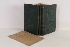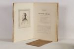 [GÉRARD (François, Baron)] - Œuvre du Baron François Gérard, 1789-1836. Gravures à l'eau forte - Paris; Vignières Rapilly, 1852-1857 - 3 volumes In-folio - Petites rousseurs éparses, petite auréole marginale aux 7 premiers feuillets du tome I - Tome I: Collection des 83 portraits historiques en pied, portrait frontispice et 83 portraits hors texte - Tome II: Tableaux, 38 planches avec leurs feuillets de légende à continuation - Tome III: Esquisses peintes, tableaux ébauchés, compositions dessinées, fac-similé, portraits à mi-corps et portraits en buste, 119 planches hors texte - Reliure éditeur demi-toile verte (quelques parties de coupes usées) - Dos ornés, titrés et tomés or - Importante et rare monographie complète du baron François Gérard (1770-1837), peintre de l'Empire et de la Restauration, réalisée par son neveu Henri Gérard - On y joint:Notice sur l’œuvre du Baron François Gérard. Portrait, listes générales de ses ouvrages, renseignements divers - Paris; Firmin Didot Frères, Fils et Cie, 1857 - 1 volume In-folio broché (couverture légèrement salie - 1 portrait de l’artiste gravé hors texte - On y joint: Encyclopédie biographique du XIXe siècle. Onzième catégorie: Pathéon artistique - Paris; Administration Générale, 1845 - 1 plaquette In-8° brochée consacrée à François Gérard avec 1 portrait gravé rapporté, en feuille.