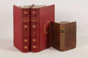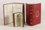 [HISTOIRE NATURELLE] - BUFFON (Georges Louis Leclerc, comte de) - Ensemble de 2 ouvrages- Correspondance inédite de Buffon à laquelle ont été réunies les lettres publiées jusqu’à ce jour. Recueillie et annotée par M. Henri Nadault de Buffon son arrière-petit-neveu - Paris; Librairie de L. Hachette et Cie, 1860 - 2 volumes In-8° - Quelques pâles et rares rousseurs éparses - Reliure de l’époque demi-chagrin bordeaux - Mention Lycée de Nantes en lettres dorées entourées d’1 couronne de lauriers aux 1ers plats - Dos à nerfs ornés, titrés et tomés or - Tranches mouchetées de brun - Étiquette de prix aux contre plats - Bon exemplaire - Morceaux choisis de Buffon, ou recueil de ce que ses écrits ont de plus parfait sous le rapport du style et de l’éloquence - Paris; Ant. Aug. Renouard, 1812 - 1 volume In-16° - Des rousseurs diffuses - De petites vignettes d’animaux gravées in texte - Reliure de l’époque veau havane moucheté de noir (2 coins usés, 2 autres émoussés) - Dos lisse joliment orné - Pièce de titre maroquin vert - Tranches marbrées.