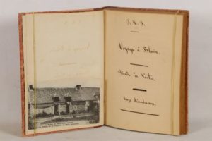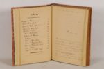 [MANUSCRIT] - FRÈRE DÉSIRÉ - Voyage à Blain. Diocèse de Nantes. Onze décembre 1874 - Récit d’1 voyage chez Marie-Julie Jahenny, mystique et stigmatisée catholique, appelée la Sainte de Blain (hameau de la Fraudais) par ses fidèles - 1 volume In-8° de 140 pages composé de recopiages de lettres d’imminences de l’église (notamment de Monseigneur Félix, évêque de Nantes ayant autorisé la visite), du récit de l’extase auquel l’auteur et M. Hamon ont assisté, des stigmates de Marie-Julie, du récit de son enfance, d’1 extrait du journal Le Pèlerin à son propos, d’1 recopiage d’1 lettre de l’Abbé Durassier de l’évêché de Nantes, d’1 lettre imprimée de M. Hamon au Journal des Villes et Campagnes relatant la visite, de l’air du chant et prière de Marie-Julie durant son extase (avec musique notée), de litanies en l’honneur de Sainte Germaine Cousin, (avec 1 page de gravures contre collées), d’1 notice sur Louise Lateau de Bois-d’Haine avec extrait de la revue L’Univers du 21 février 1875, et de 8 recopiages de lettres de l’Abbé David, vicaire de Blain et directeur de Marie-Julie - Reliure de l’époque demi-basane rose (mors très frottés, plats insolés et toile décolorée - Dos à nerfs orné et titré or (passé et frotté) - Belle écriture bien lisible à l’encre noire - On y joint 1 carte postale de la maison de Marie-Julie Jahenny avec la mention manuscrite au dos: «Carte postale bénite chez Marie-Julie (sur ses genoux) par Notre-Seigneur et la très Sainte Vierge pendant l’extase du jeudi 18 mai 1935».