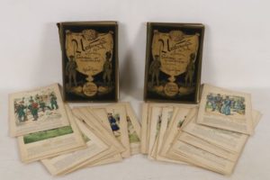 [MILITARIA] - KNÖTEL (Richard) - Uniformenkunde. Lose Bläter zur Geschichte der Entwickelung der militärischen Tracht in Deutschland - Rethenow; Max Babenzien, 1890 - 2 volumes In-8° (sur 18) en feuilles sous chemises toilées verte ornées d’1 décor vert et or avec titres dans 1 bannière dorée (1 mors partiellement fendu avec dos quelque peu décollé) - 161 planches d’uniformes rehaussées en couleurs au pochoir, légendées avec texte explicatif.