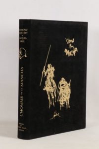 BREL (Jacques) - Raymond Moretti illustre L’Homme de la Mancha - Sans lieu; Éditions Armand et Georges Israël, 1985 - 1 volume In-folio en feuilles sous chemise cartonnée blanche ornée d’1 décor et du titre dorés au 1er plat, sous coffret de velours noir orné et titré à l’identique et titré or en long au dos - Illustrations couleurs hors texte de Raymond Moretti, certaines sur double page - Très bon exemplaire numéroté sur grand vélin de Lana.