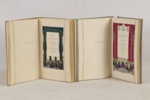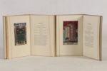 Ensemble de 2 volumes - MOLIÈRE - L’École des femmes - [Paris]; Éditions Jardin du Luxembourg, 1948 - 1 volume grand In-8° broché, sous couverture rempliée, chemise titrée au dos et emboîtage - Illustrations miniaturistes hors texte en couleurs, rehaussées en couleurs au pochoir par Jean Gradassi - Très bon exemplaire numéroté sur vélin ivoire de Lana (n°63 sur les 350, tirage total: 356) - RACINE (Jean) - Les plaideurs - [Paris]; Éditions Jardin du Luxembourg, 1949 - 1 volume grand In-8° broché, sous couverture rempliée, chemise titrée au dos et emboîtage - Illustrations miniaturistes hors texte en couleurs, rehaussées en couleurs au pochoir par Jean Gradassi - Très bon exemplaire numéroté sur vélin ivoire de Lana (n°44 sur les 400, tirage total: 415)