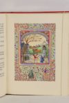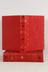 [FABLES] - Les fabliaux du Moyen-âge - Nice; Éditions d’Art Sefer, 1967-1968 - 2 tomes en 1 fort volume In-folio - Bandeaux, lettrines, et planches miniaturistes à pleine page par Lucy Boucher, le tout doré et colorié à l’aquarelle au pochoir - Reliure éditeur maroquin cerise - 1er plat encadré d’1 filet et de fleurs de lys dorées, avec grande fleur de lys centrale frappée à froid, dos à nerfs orné en noir et or et titré or, sous étui demi-maroquin avec dos à nerfs orné en noir et or et titré or (très légers frottements) - Contre plats et gardes de moire bordeaux - Tête dorée - Très bel exemplaire numéroté sur vélin de Rives (n°45 sur les 108 exemplaires de luxe, tirage total: 450) avec dessin original en couleurs signé de l’artiste à part - Certificat de garantie.