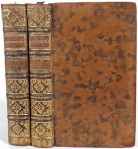 piqüres, mouill. marg. au vol. I, larges au vol. II, déch. marg. à la p. 241 du vol. I, pet. et lég. traces de moisissures et qqs taches au vol. II). Rel. de l'époque : plein veau marbré, dos fleuronnés dorés à nerfs, tr. rouges (manque au dos du vol. I, frottées par endroits, coupes émoussés et coins plus fortement).