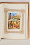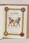 HOMÈRE - Illiade - Sans lieu; Éditions du Cadran, 2007 - 1 volume In-folio - Ornementations au texte, dessins et lettrines in texte en couleurs et page de titre, 1ère lettrine et dessins en couleurs hors texte rehaussés au pochoir de Christophe Simon et Jacques Martin - Reliure éditeur chagrin fauve sous emboîtage bordé toilé brun - 1er plat encadré d’1 large frise à froid avec encadrement central dans lequel figure 1 chevalier grec frappé à froid sur fond brun - Marque de l’éditeur frappée à froid au 2nd plat - Contre plats et gardes de moire brune - Dos à nerfs orné avec titre doré sur fond brun - Tranches dorées - Très bel exemplaire numéroté (n°239 sur les 382, tirage total: 600 + quelques hors commerce).
