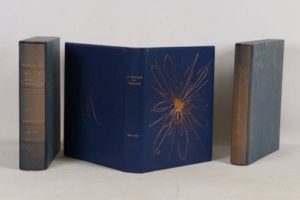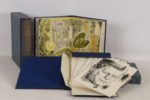 KENNEDY (John Fitzgerald) - Discours traduits en français par J. Bloch-Michel - Paris; Club du livre, Philippe Lebaud, 1967 - 2 volumes grand In-4° - 20 lithographies en couleurs dont frontispice et 6 planches doubles par Mac’Avoy - Reliure éditeur chagrin maroquiné bleu d’après la maquette de Michel Kieffer - Motif abstrait doré au 1er plat, initiales JFK dorées au 2nd, chemise demi-cuir bleu, dos à nerfs titré or (passé), emboîtage bordé - Tranches dorées - Très bon exemplaire numéroté sur Japon nacré (n°8 sur les 20, tirage total: 300 + 25 hors commerce), avec signature autographe de l’artiste à la justification, et le 2nd volume comprenant 1 suite en noir sur Auvergne et 1 suite en couleurs sur Rives (sans la gouache originale mentionnée pour notre tirage), le tout en feuilles sous chemise à rabats aux plats à l’identique du volume de texte et emboîtage bordé.