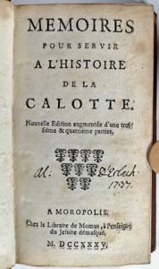 (Comica & Satirica) - Ens. 3 ouvr. - Mémoires pour servir à l'histoire de la calotte. Nouvelle édition augmentée d'une troisiéme & quatriéme parties. Moropolis [Pays-Bas], chez le libraire de Momus, à l'enseigne du Jésuite démasqué, 1735. 4...