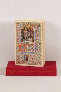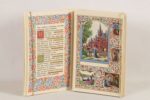 LA HALLE (Adam de) - Le jeu de la Feuillée - Monte Carlo; Éditions du Parnasse, 1964 - 1 volume petit In-8° en feuilles sous chemise rempliée illustrée couleurs au 1er plat, et étui toilé rouge titré or au dos - Chaque page est richement ornée de miniatures en couleurs enluminées avec de riches encadrements, tous dessinés par Jean Gradassi le tout colorié au pochoir - Très bon exemplaire numéroté sur pur chiffon de Lana poudré (n°71 sur les 750, tirage total: 810).