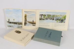 LA VARENDE (Jean de) - Le plat pays. 25 gouaches originales de la main de J. P. Rémon évoquent Boulogne, Bruxelles, Amsterdam, Bruges où vécut Mozart - Paris; E.A.D., 1967 - 1 volume In-folio en feuilles sous couverture rempliée ornée d’armoiries et étui toilé titré or au dos (insolé) - 25 gouaches originales de J. P. Rémon in et hors texte en couleurs - Très bon exemplaire numéroté sur japon nacré (n°26 sur les 20, tirage total: 183), sans la page manuscrite de La Varende ni le tableau mentionnés à la justification, mais avec les 4 gouaches originales ne faisant pas partie de l’illustration de l’ouvrage, signées, dans pochette à part.