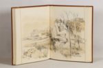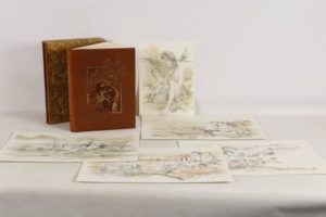 LONGUS - Daphnis et Chloé - Bièvres; Pierre de Tartas, 1983 - 1 volume In-folio - Lithographies originales en 2 tons sur double page et en gris et vert in texte de Paul Dauce - Reliure éditeur chagrin havane maroquiné frappé d’1 décor or et à froid au 1er plat, emboîtage bordé - Dos à nerfs titré or en long - Tête dorée - Très bel exemplaire numéroté sur japon nacré (n°27 sur les 35, tirage total: 2119), avec suite sur soie de 4 planches doubles, 1 suite sur grand vélin de Rives de 9 planches doubles-planches et d’1 hors texte dans chemise à part.
