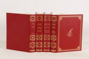MOLIÈRE - [Œuvres] - Sans lieu; Éditions Michèle Trinckvel, sans date - 4 volumes grand In-8° - Planches hors texte, certaines sur double page, en couleurs par Dubout - Reliure éditeur chagrin bordeaux - 1ers plats encadrés de filets et de pointillés, fleurons angulaires et décor central dorés - Dos à nerfs ornés et titrés or - Têtes dorées - Très bons exemplaires.