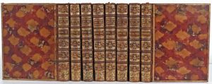 pet. mouill. marginales). Rel. de l'époque : plein veau à marbrures formant des quadrillés, dos fleuronnés dorés à nerfs, tr. marbrées (lég. us.).