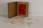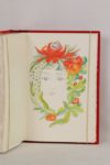 SAINTE-MAURE (Charles de) - Guirlande de Julie - Sans lieu; Éditions Carrés d’Art, [vers 2001] - 8 dessins originaux aquarellés hors texte, toutes signées au crayon de Danièle Fuchs - Reliure éditeur daim rouge orné d’1 personnage à la chevelure de rose au 1er plat, étui doré In-folio titré au dos - Très bon exemplaire numérotésur vélin de Rives (n°6 sur les 40, tirage total: 113), avec suite au trait sur japon nacré, enrichi d’1 envoi autographe signé de l’illustratrice à l’1 des gardes blanches et d’1 aquarelle originale signée à pleine page à 1 garde suivante.