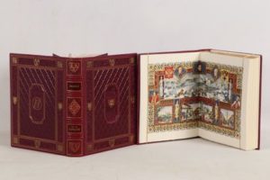 STENDHAL - Vie de Napoléon - Nice; Éditions d’Art Sefer, Monte Carlo; Éditions Arts et Couleurs, 2006 - 2 volumes In-4° - Texte encadré de fines frises en couleurs et illustrations miniaturistes in et hors texte rehaussées en couleurs au pochoir de Dominique Pardigon - Reliure éditeur chagrin maroquiné prune sous emboîtages bordés - Plats richement ornés d’abeilles et de scènes frappées à froid et or d’après l’artiste, 1er plat frappé d’1 scène de bataille au centre - Contre plats et gardes doublés de moire prune - Dos à nerfs ornés à l’identique, titrés et tomés or - Têtes dorées - Très bon exemplaire numéroté (n°229 sur les 465, tirage total: 620 +20 hors commerce) - Certificat d’éditeur.