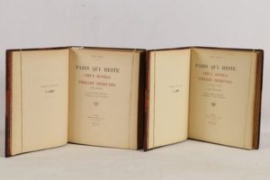 [PARIS] - COLAS (René) - Paris qui reste. Vieux hôtels, vieilles demeures. Rive droite. Rive gauche - Paris; Librairie René Colas, 1914-1924 - 2 volumes In-4° - 200 planches accompagnées de notices historiques - Reliure de l’époque demi-chagrin bordeaux à coins (de menus défaits) - Couvertures et dos conservés - Dos à nerfs ornés (très légèrement passés) - Pièces de titre maroquin bordeaux - Têtes dorées - Très bons exemplaires numérotés sur vergé (n°878 et 959).