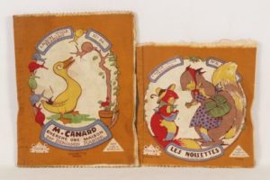[ENFANTINA] - Ensemble de 2 livres en tissu édités à Paris par Yves M. Bozellec et Hachette dans la collection L’Album-Toile Français - MAY (Colette) - Les noisettes - In-8° - N°74 - RABIER (Benjamin) - M. Canard cherche une maison - In-4° - N°84 - Tous 2 illustrés couleurs - Très bon état.