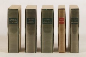 [LA PLÉIADE] - Ensemble de 5 volumes In-12° édités à Paris; Gallimard, NRF, collection La Pléiade - DOSTOÎEVSKI - Les Frères Karamazov - AUCOUTURIER (Gustave) - Album Dostoïevski - 557 illustrations - TOLSTOÏ - La guerre et la paix - Anna Karénine - GOGOL - Œuvres complètes - Reliures éditeur chagrin, sous jaquettes, rhodoïds et emboîtages - Bon état.