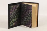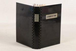 [RELIURE JOTAU] - MAUROIS (André) - Les discours du Docteur O’Grady - Paris; Albin Michel, 1922 - 1 volume In-8° - Reliure Art-Déco en bakélite noire Jotau brevetée S.G.D.G. avec au 1er plat, jeu de rainures horizontales et pièce de métal titrée incrustée, charnières articulées, plats biseautés - Contre plats et gardes de papier décoré vert, violet, or, argent et noir - Dos lisse titré sur plaque métallique incrustée - Tête dorée - Discret ex-dono manuscrit à la 2nde garde blanche - Bon exemplaire en édition originale numérotée sur vélin pur Chiffon - Très belle reliure industrielle en bakélite. Objets d'un véritable engouement dans les années 1930, le coût de fabrication élevé de ces reliures interdit cependant leur développement et elles sont restées rares.