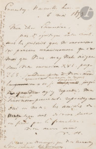 Victor HUGO (1802-1885). — L.A.S. « V.H. », Guernesey, Hauteville house 6 mai 1857, à Alphonse de Lamartine ; 1 page in-8 avec ratures et corrections.