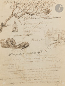Page extraite de ses Cahiers, illustrée de dessins à la plume.