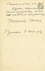 Maurice DENIS (1870-1943). — L.A.S., Saint-Germain-en-Laye 8 août 1892 ; 1 page et demie in-8.