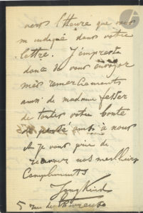 Il remercie pour l’envoi de médicaments et d’une « bouteille de la bonne Cognac », mais il manque « les gravures des épreuves de votre invention, que vous avez probablement oublié ». Il le remercie, et ira le voir avec Mme Fesser.