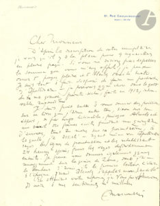 Louis MARCOUSSIS (1883-1941). — L.A.S., [Paris 31 mai 1933, à René Gaffé] ; 1 page in-4 à son adresse 61, Rue Caulaincourt. — Au bibliophile et collectionneur belge René Gaffé au sujet de l’illustration d’un exemplaire d’Alcools...