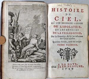 BOCCALINI, Tr.- De' ragguagli di Parnaso. Venise, Guerigli, 1617, in-4° plein parchemin. Ouvrage satirique.— GUARINI, B.- Le berger fidèle. Cologne, Marteau, 1686, in-12° plein veau moucheté. Édition juxtalinéaire italien-français, 1 planche.— PLUCHE, N.- Histoire du ciel, ou l'on recherche l'origine de l'idolâtrie, et les méprises de la philosophie, sur la formation, & sur les influences des corps célestes. La Haye, Neaulme, 1744, 2 vol. in-12° plein veau moucheté. Frontispice.— ANACRÉON.- Odes, traduites en françois, avec le texte grec, la version latine [...]. Paris, Didot l'aïné, an VII [1798], in-4° demi-veau. Frontispice.— TIBULLE; MIRABEAU.- Élégies. Paris, s.n., an VI - 1798, 2 vol. in-8° plein veau. Front. et qqs pl., ex-libris Richer.