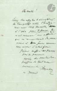 Il souhaite reporter leur rendez-vous à l’Opéra avec M. Dacosta à 3 heures ; « il m’est survenu une affaire qui m’empêcherait de pouvoir venir à une heure comme nous avions d’abord fixé »…