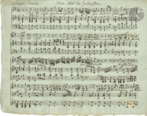 On joint le ms d’une aria avec orchestre de Gluck tirée de l’opéra Die Pilgrime von Mekka (11 p. obl. in-8) ; plus un autre ms d’Aria avec orchestre « Ah per te l’amato bene »… (19 p. obl. in-8).
