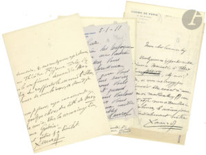 On joint l’estampe en relief par Alexandre Charpentier pour le déjeuner offert à Antoine par les auteurs du Théâtre-Libre, 7 décembre 1896, avec au dos la liste à l’encre rouge des 85 convives (et soulignés, les 22 présents le 20 mai 1940) ; plus qqs doc.