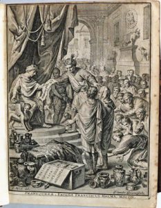 Old Testament entirely in Greek edited by the Greek professor at the University of Franeker in the Netherlands Lambert Bos (1670-1717) after the text conserved in the Vatican. With critical notes referring to other manuscripts and to the translations of Aquila, Symmachus and Theodosius. Illustrated with an engraved title by G. vander Gouwen (the 70 translators offering the text to the King Ptolemy II Philadelphus), 1 plate on double page (the Tabernacle construction) and 4 maps whom 1 folding (Jerusalem, Paradise and Canaan by Joseph Moxon after Nicolaes Visscher, the Holy Land by the Jesuit Jacques Bonfrère (1573-1642) after Christian Van Adrichem). Copy with the two half-titles : one before the engraved title and one before the Psalter. # Darlow-Moule 4726; # Poortman en Augusteijn 237-242; # Brunet I-864; # pas dans Renier. ^ Ancien Testament en grec édité par Lambert Bos. Illustré d'un titre gravé, d'une planche sur double page et de 4 cartes. Pleine basane de l'ép. (rouss., nombreuses à certaines pp., coiffe sup. manquante, lég. frottée sur les bords).