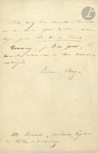 Victor HUGO (1802-1885). — L.A.S., [mars 1850], à M Arnault, régisseur du théâtre de l’Ambigu ; demi-page in-8.