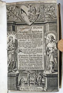 (Dévotion) - Ens. 3 ouvr. - ZACHMOORTER, Michiel.- Thalamus sponsi oft t' bruydegoms beddeken [...]. Antwerpen, Jan Cnobbaert, 1635. 2 delen in 1 vol. in-12° : [24 incl. gegrav. titel]-300, 364-[8] pp. (enkele bladen vergeeld, sporadische vlekjes,...
