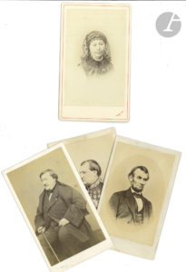 On joint 3 photographies format carte de visite : Abraham Lincoln, Prince Napoléon, Gioacchino Rossini.