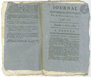 AÉROSTATION. — 2 numéros du Journal historique et politique, Genève 12 juin et 10 juillet 1784 ; in-12, brochés avec couverture.