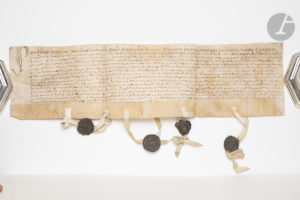 Charte, Moreausart (Avesnois) 6 juin 1611 (parchemin avec 4 sceaux de cire brune aux armes pendant sur double queue). Déclaration de foi et hommage. Plus 4 actes sur papier, Fromelles (ou Frouville ?) en Flandre 1590-1613, ventes de terres. 2 P.S., Mauvages (Meuse) 1563-1602 (vélins avec sceaux). Donation et dénombrement concernant la seigneurie de Mauvages. 17 pièces, concernant Toulouse et sa région, 1553-1784, dont un jugement en faveur de l’archevêque de Toulouse (1620) ; une procédure entre les religieux de l’abbaye de Grand-Selve et le cardinal de Lavalette (1621) ; la commune de Verfeil (1711-1784). Plus une carte gravée entoilée du dép. de la Haute-Garonne (mouill.).