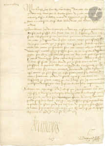 Pareillement jay veu la provision que vous avez mise pour le payement des six mille Suisses de la derniere levée, et la response que vous avez faicte a Boisrigault sur les inventions qu’il trouve ordinairement pour me mettre en despense, dont je suys autant ennuyé qu’il est possible. Et ne puis entendre que en faisant levée si grande qui doibt empescher toutes les menées que sçauroient faire mes ennemys, lon me doibve donner cette craincte quilz en puissent faire ny me conseiller de despendre argent pour les en engarder. Et quant aux deux mille que la levée se monte davantaige, je lay trouvé tres mauvais. Mais puisque la levee est faicte, il n’y a remede qu’il ne faille tirer oultre et satisfaire au payement. Mais au regard des lansquenetz que jay mandé a mon filz d’Orleans [le futur Henri II] menvoyer jay commandé a Godet descripre a son commis que sur le fons qui a esté faict a mondict filz d’Orleans, il envoye incontinant par deça la soulde a quoy se monteront les lansquenetz qui seront envoyez par deça […]