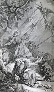 Premier tirage des gravures de cet ouvrage satirico-hérétique par le réformateur Alber (mort en 1553), élève et zélé partisan de Luther. Il est tiré de la célèbre hagiographie rédigée par le père cordelier franciscain Bartelémy Albizzi (ou de Pise, mort en 1401), dans laquelle la vie et les miracles de saint François sont présentés comme supérieurs à ceux de Jésus-Christ. Traduit de l'allemand en français par Alber, puis par Cornelius Badius qui compléta l'ouvrage et donné la première fois à Genève en 1560 et 1578. Notre édition, d'après la traduction de Badius, est illustrée par Bernard Picart le Romain d'1 frontispice (non signé), 20 hors-texte et 1 figure dépliante figurant l'Arbre de la Conformité de saint François avec Jésus-Christ. Les figures du tome Il, pp. 68 et 114, sont découvertes. # Cohen 6; # Reynaud 3; # Barbier I-152; # Biogr. univ. I-315/316 et 351.